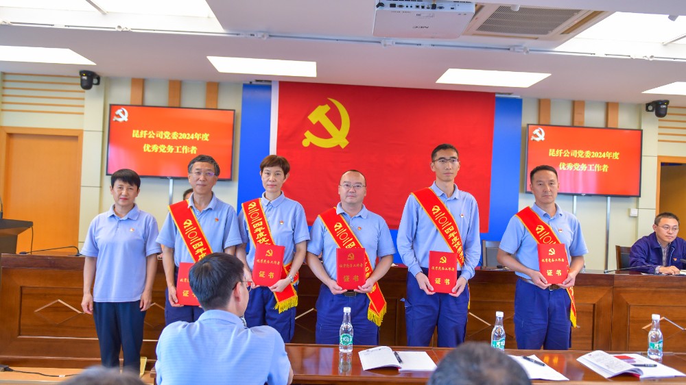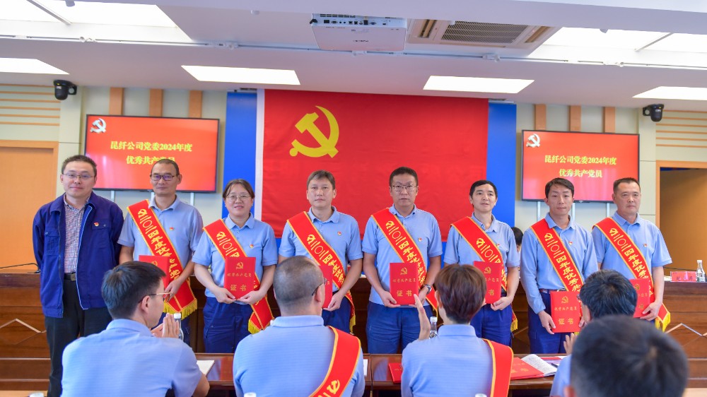 會(huì )上,公司黨委委員趙從濤宣讀了《昆纖公司黨委2024年度表彰決定》,決定對楊上功、張其蘋(píng)等為代表的5名優(yōu)秀黨務(wù)工作者,對謝俊馳、盛湸為代表的8名優(yōu)秀共產(chǎn)黨員進(jìn)行表彰。在熱烈的掌聲中,全體委員為獲得2024年度公司先進(jìn)黨支部、優(yōu)秀黨務(wù)工作者、優(yōu)秀黨員的支部代表和黨員進(jìn)行頒獎,并表示祝賀。先進(jìn)黨支部、優(yōu)秀共產(chǎn)黨員代表發(fā)言。全體黨員重溫了入黨誓詞。