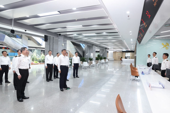 10月15日至16日,中共中央總書(shū)記、國家主席、中央軍委主席習近平在福建考察。這是16日上午,習近平在中國(福建)自由貿易試驗區廈門(mén)片區考察時(shí),同綜合服務(wù)大廳現場(chǎng)工作人員親切交流。新華社記者 鞠鵬 攝